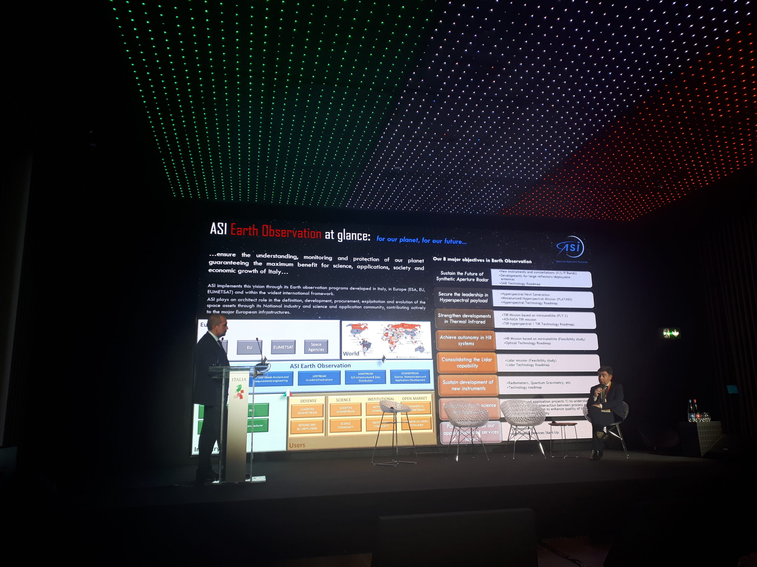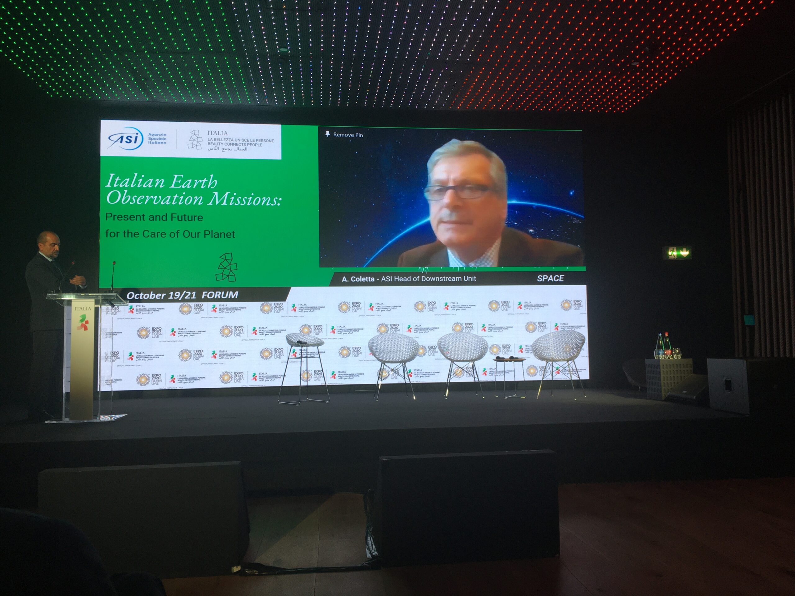 Il 21 ottobre 2021 l'ASI ha organizzato un incontro dal titolo 'Italian Earth Observation Missions: Present and Future for the care of our Planet. Tema centrale del forum, il ruolo di primissimo piano che l’Italia da sempre ricopre nel campo dell’osservazione della Terra dallo spazio. Due missioni di enorme rilevanza lo confermano: COSMO-SkyMed, basata su una costellazione di satelliti dotati di radar ad apertura sintetica (SAR) e PRISMA, un sistema dotato di strumenti elettro-ottici che integra un sensore iperspettrale con una fotocamera pancromatica. È grazie a questi asset che l'Italia è protagonista di diverse collaborazioni internazionali, tra cui SIASGE, il Sistema satellitare italo-argentino per la gestione dei disastri e lo sviluppo economico.