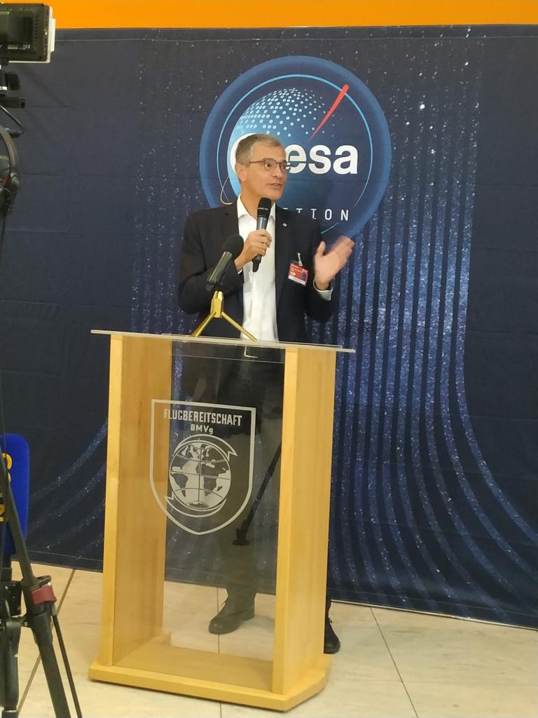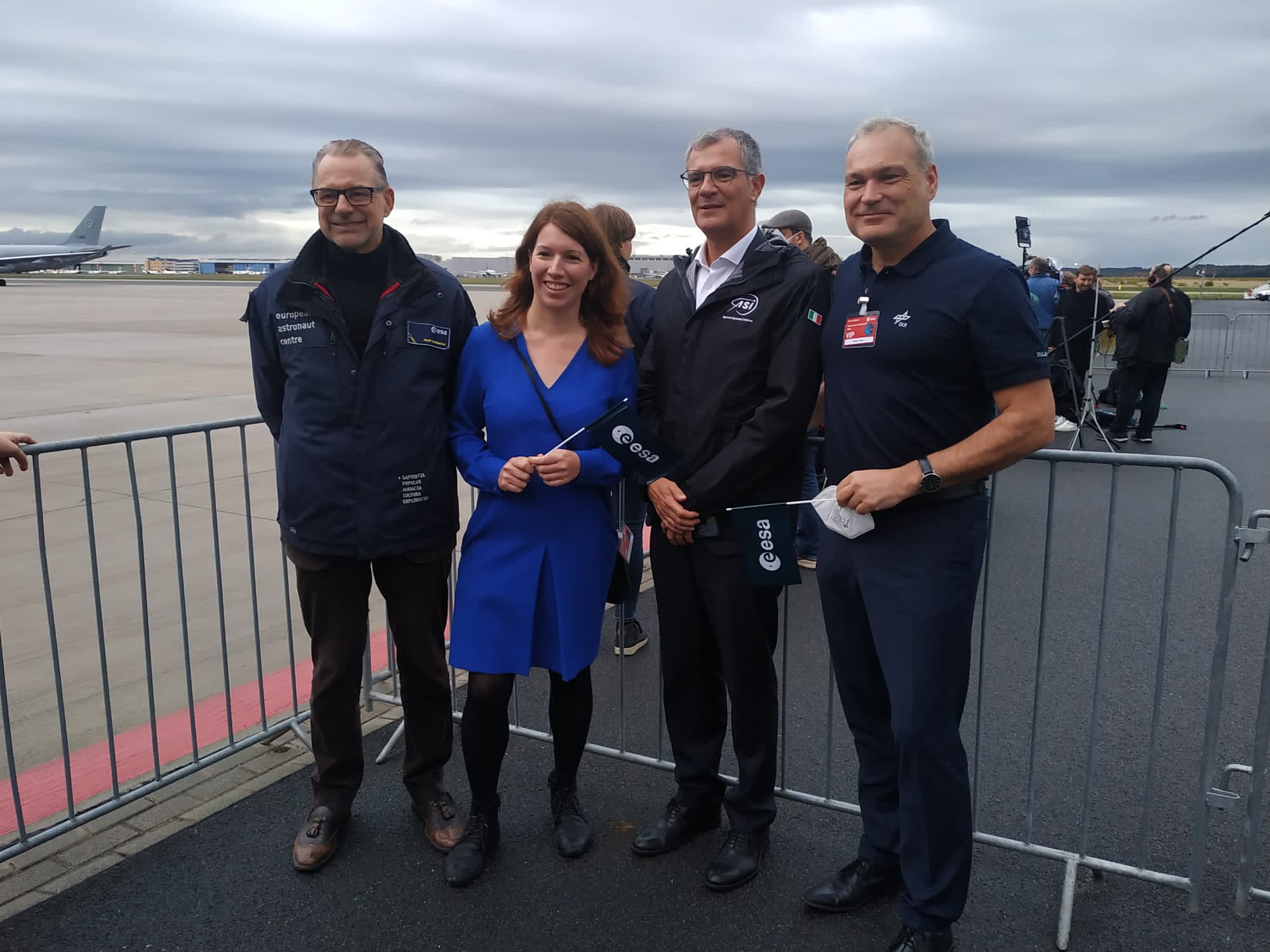 - Il DG ESA Josef Aschbacher con la parlamentare tedescaAnna Christmann, il presidente ASI Giorgio Saccoccia e il direttore della DLR, Walther Pelzer