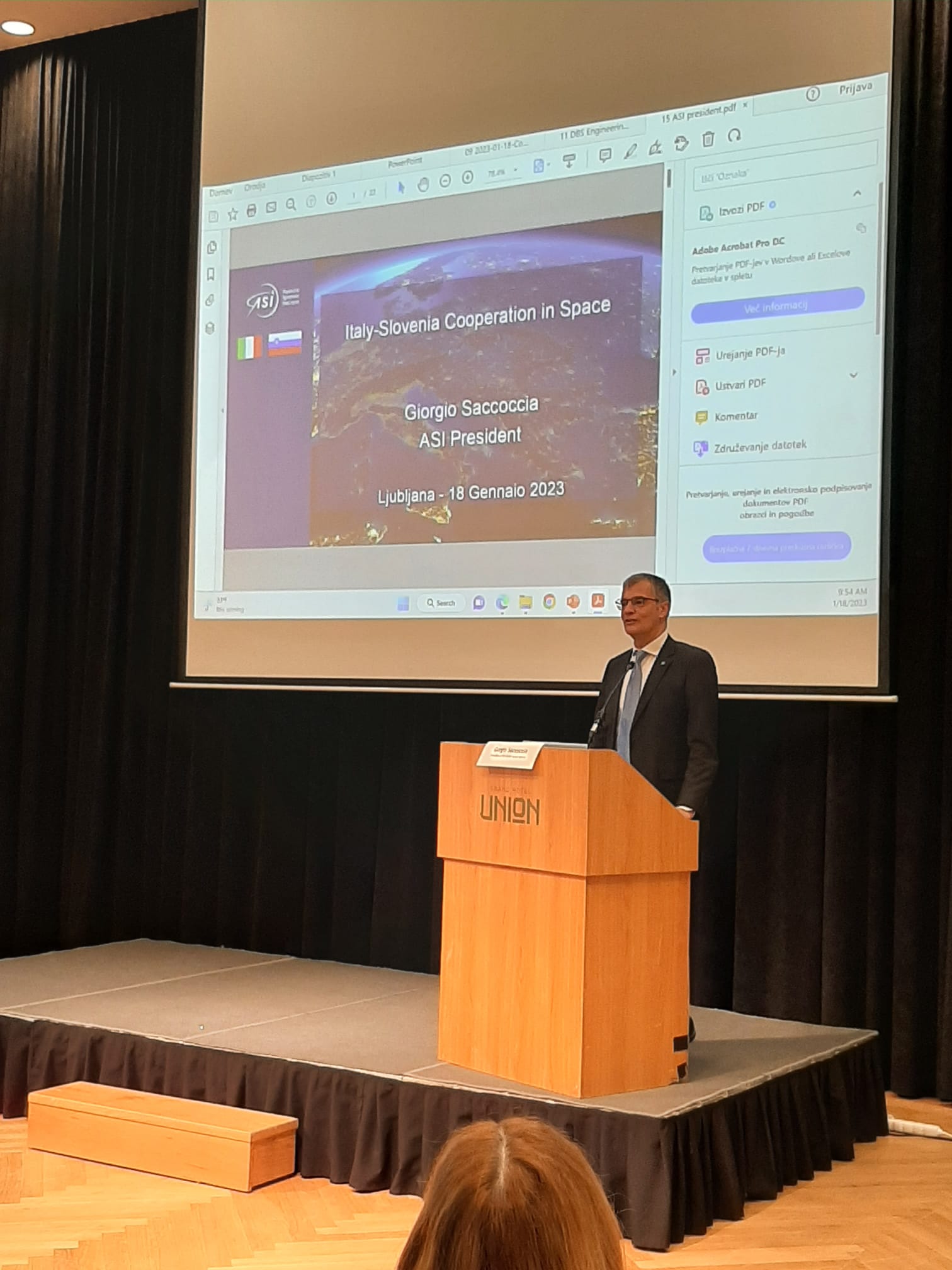 Il Presidente dell’Agenzia Spaziale Italiana Giorgio Saccoccia con una delegazione dell'ASI e vari referenti della comunità spazio nazionale, il 18 gennaio, incontrano le istituzioni e la comunità spaziale slovena a Lubiana.