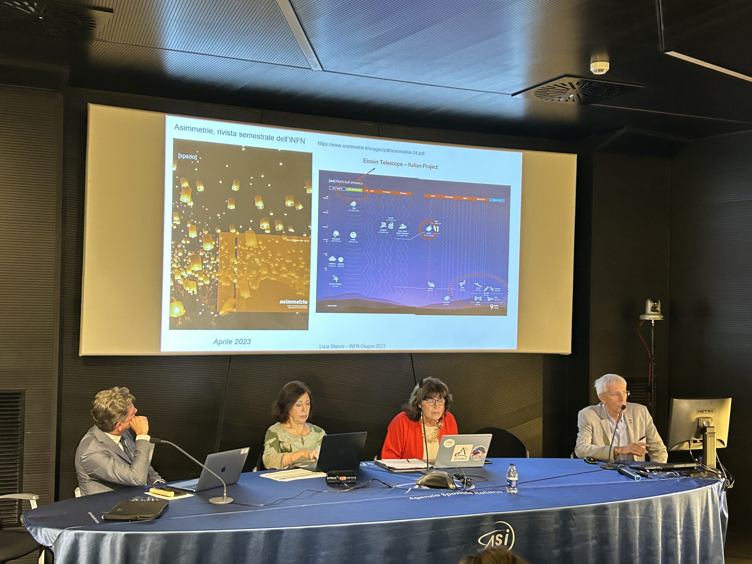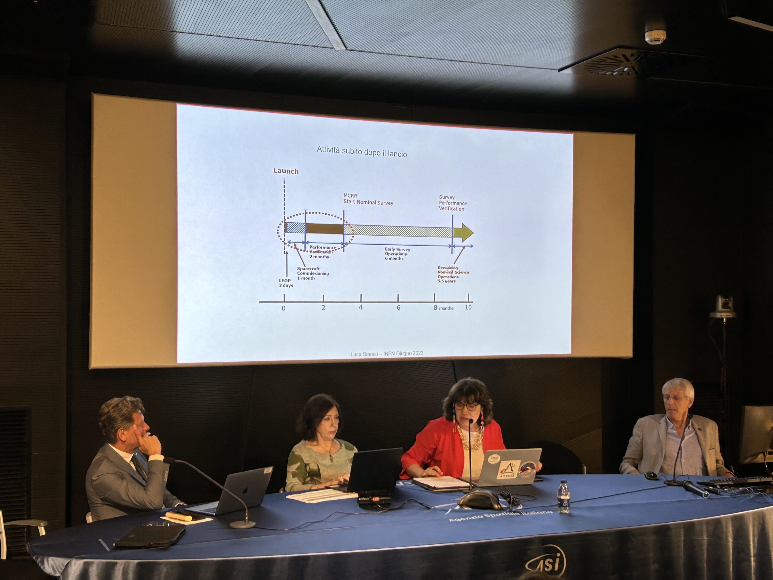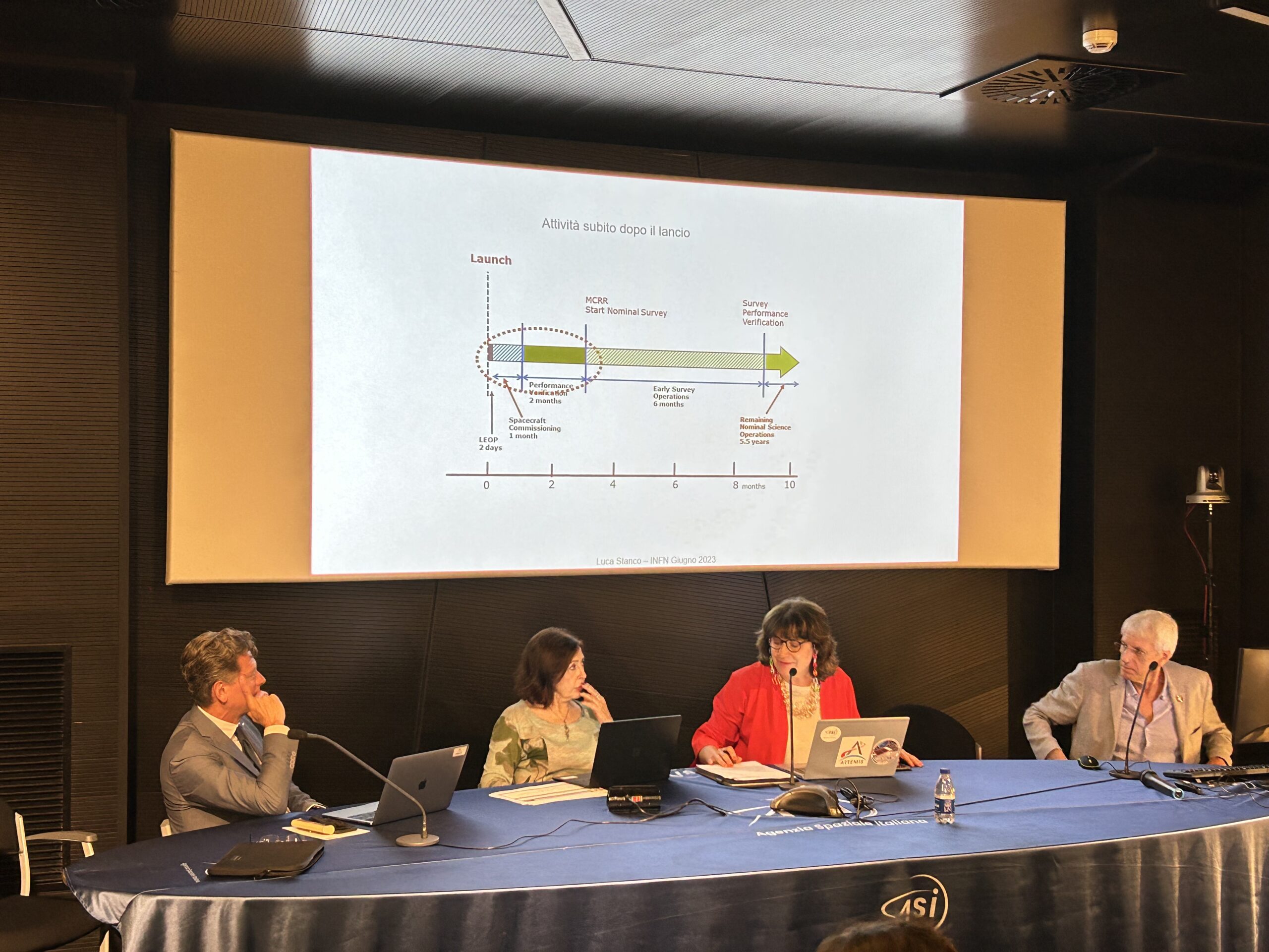 Presenti: Barbara Negri, Responsabile Volo Umano e Sperimentazione Scientifica, ASI, Giuseppe Racca, Project Manager della missione Euclid, ESA, Anna Maria Di Giorgio, Coordinatore tecnico-scientifico dell’accordo ASI-INAF per il supporto alle attività per la missione Euclid, INAF, Luca Stanco, Responsabile Nazionale INFN per Euclid, Walter Cugno, Responsabile Esplorazione e Scienza Thales Alenia Space.