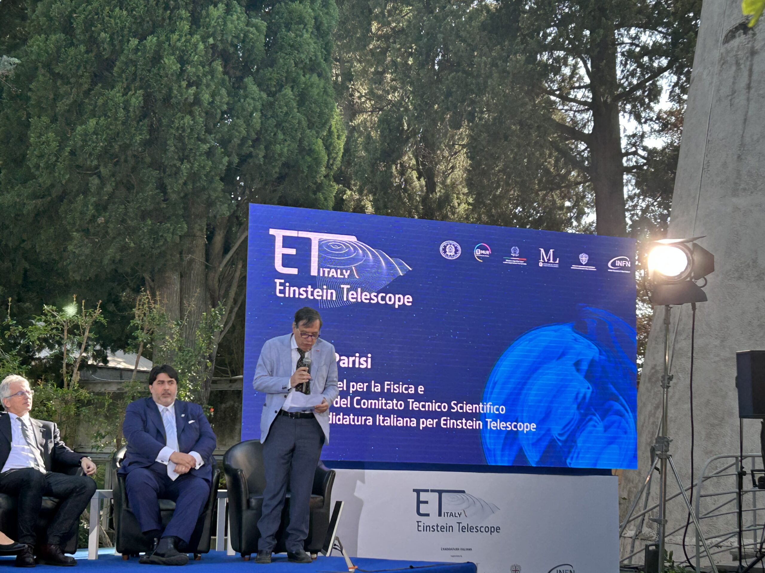 Alla presentazione hanno partecipato  anche : Giorgio Parisi, Premio Nobel per la Fisica e presidente del Comitato Tecnico Scientifico per la candidatura Italiana; Ettore Sequi, ambasciatore e Capo delegazione italiana nel Board of Governmental Representatives di Einstein Telescope, Antonio Zoccoli, presidente dell’INFN, Marco Tavani, Presidente dell’INAF e Christian Solinas, presidente della Regione Autonoma della Sardegna.