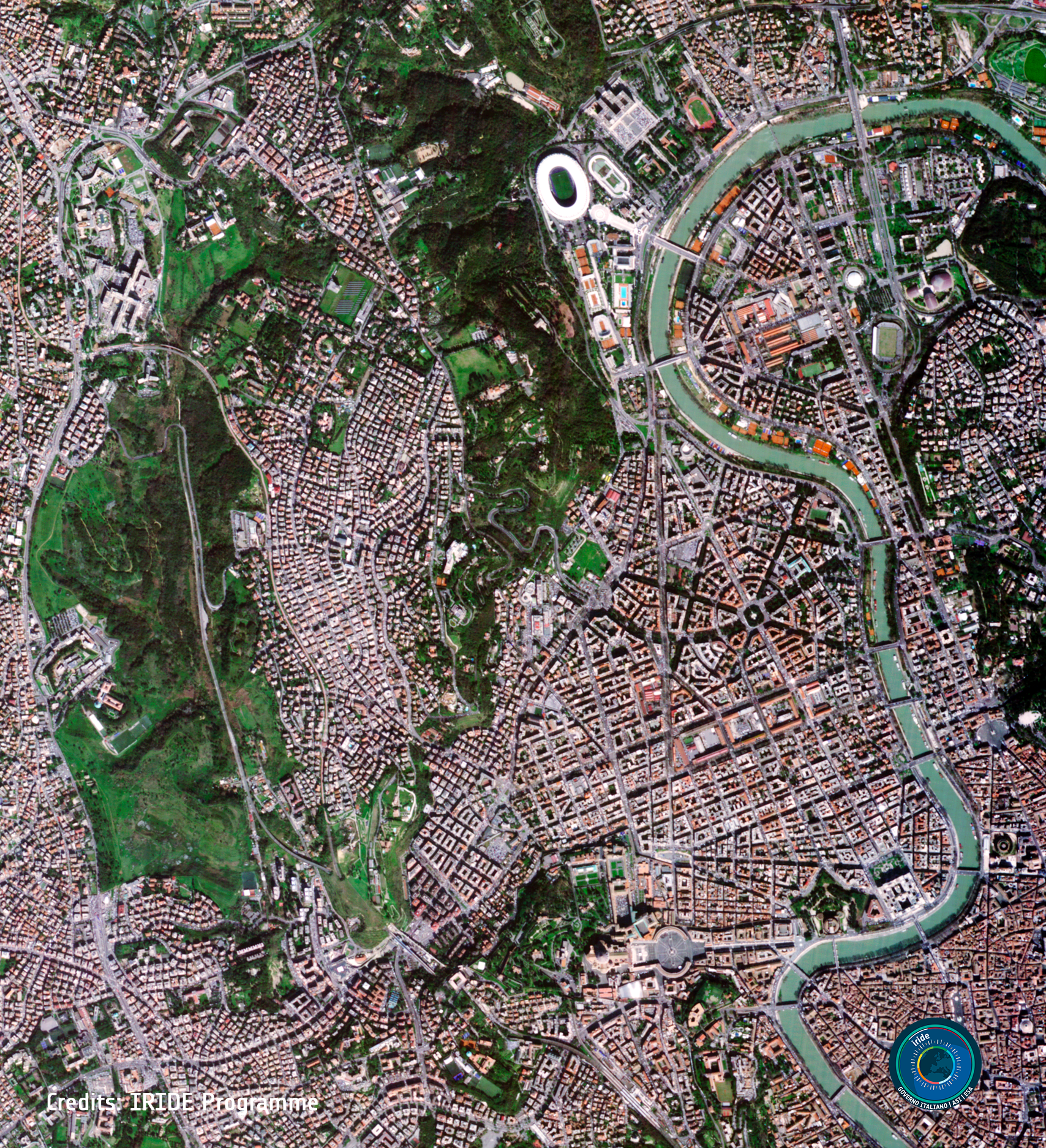 È stata pubblicata oggi la prima immagine del programma italiano di osservazione della Terra, IRIDE. Si tratta di uno scatto che mostra una fascia della penisola italiana, comprendente la città di Roma, con una risoluzione di 2,66 metri, circa tre volte superiore rispetto a quella attualmente disponibile per l’acquisizione sistematica sul territorio nazionale.