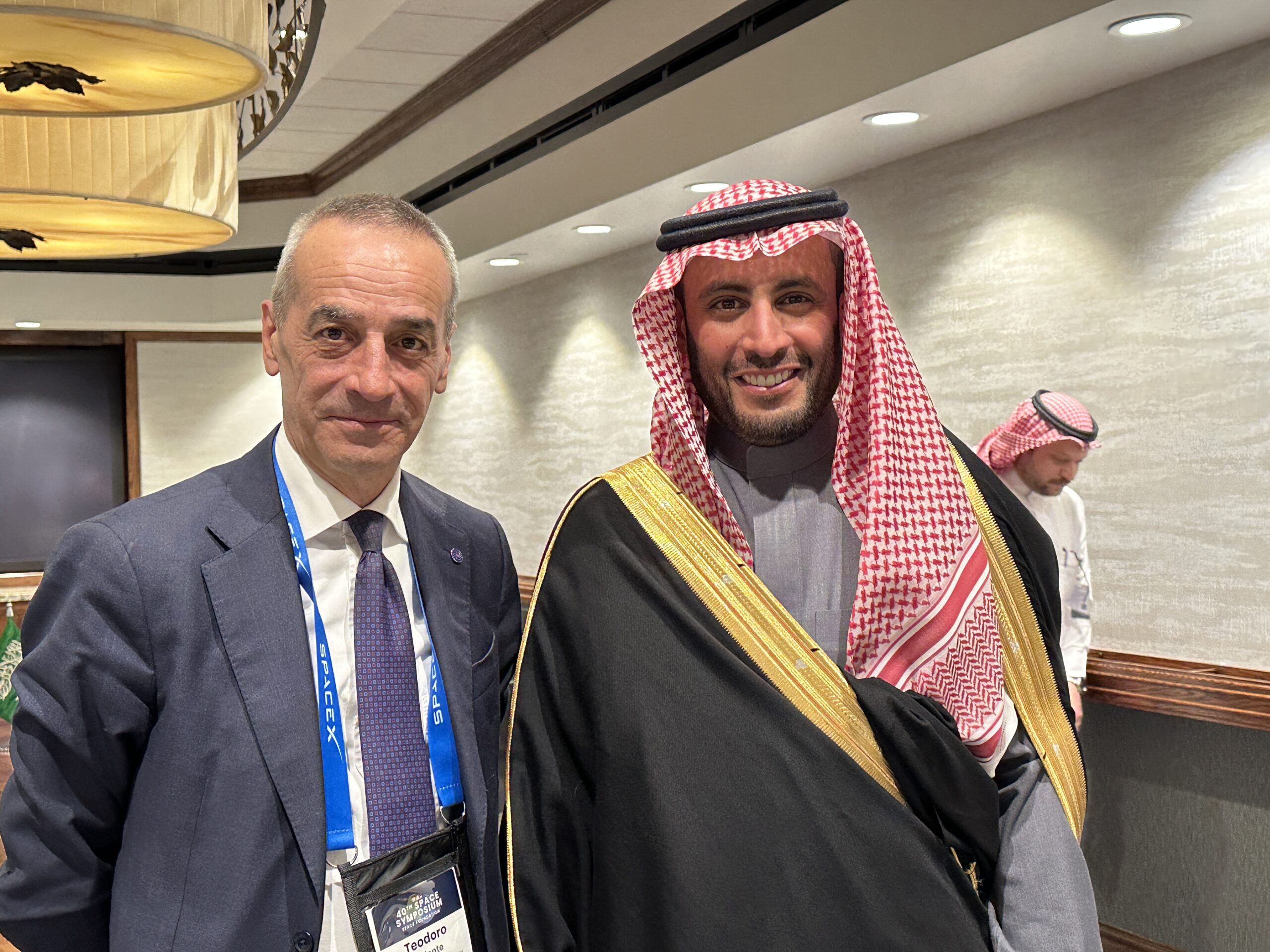 Foto 2: il presidente ASI Teodoro Valente con Abdullah Alswaha, presidente Saudi Space Agency. Con la SSA sono già in essere un Memorandum of Understanding e gruppi di lavoro tematici.