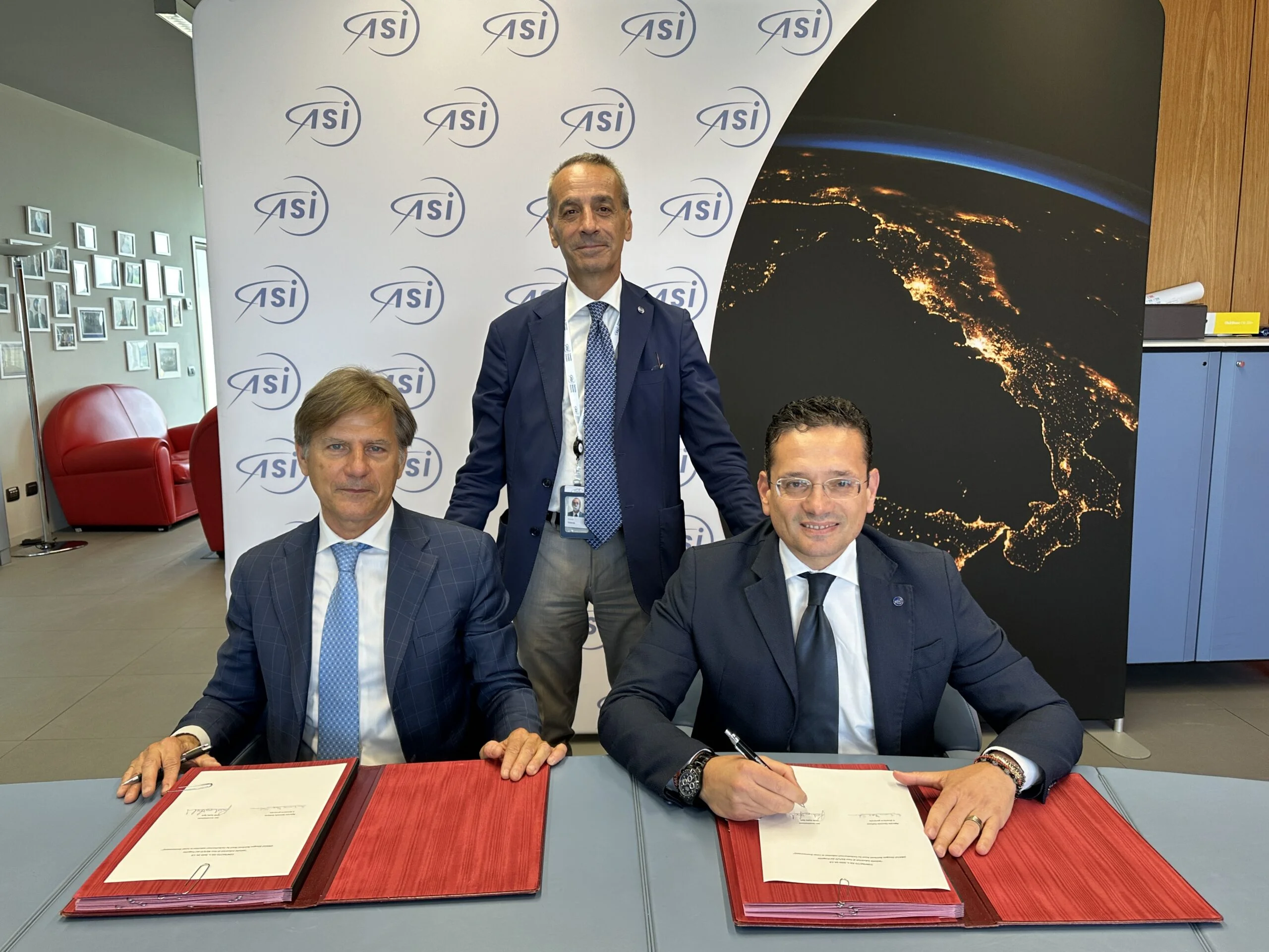 - Da sinistra; Il managing director di Ohb Italia, Roberto Aceti, il presidente dell’ASI, Teodoro Valente e il direttore generale dell’ASI, Luca Vincenzo Maria Salamone