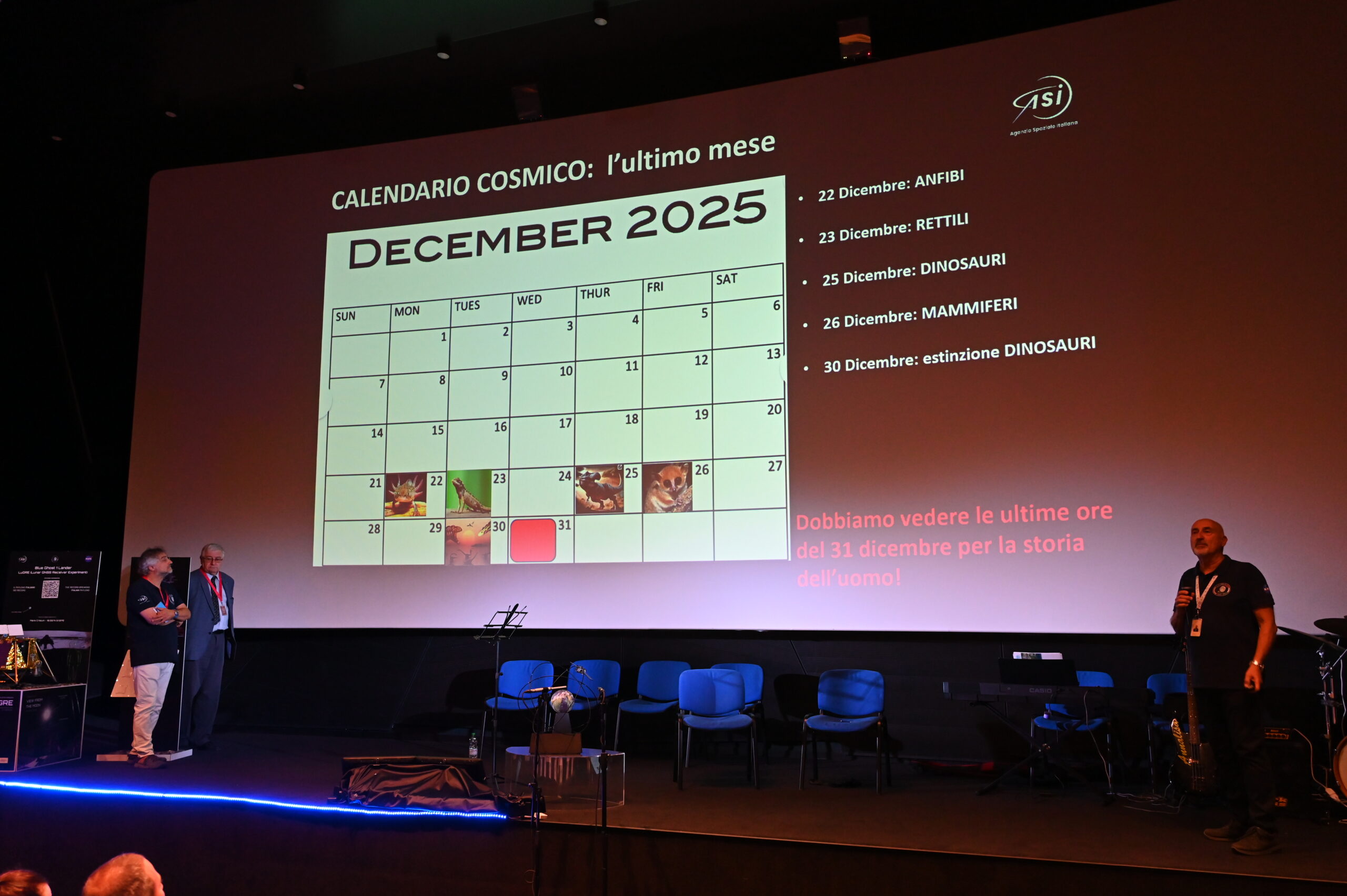 Valerio Vagelli e Andrea Marinucci hanno invitato il pubblico a partecipare al quiz interattivo “Che tempo fa nell’Universo? La sfida cosmica dove ogni secondo conta”. A conclusione della serata in Auditorium l’Orchestra i Giovani Accademici ha eseguito colonne sonore cinematografiche ispirate allo spazio.