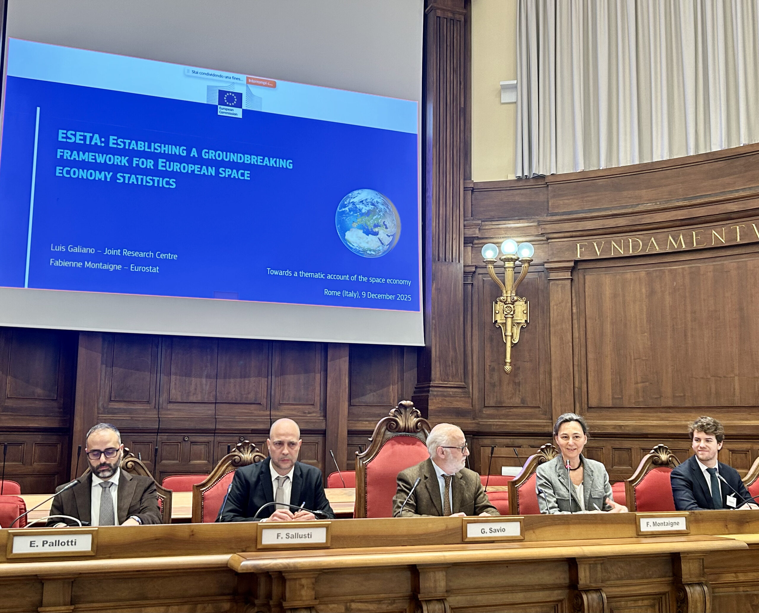 - Da sinistra: Emanuele Pallotti, ISTAT, Federico Sallusti, ISTAT, Giovanni Savio, ISTAT, Fabienne Montaigne, Eurostat, Luis Galiano Bastarica, JRC