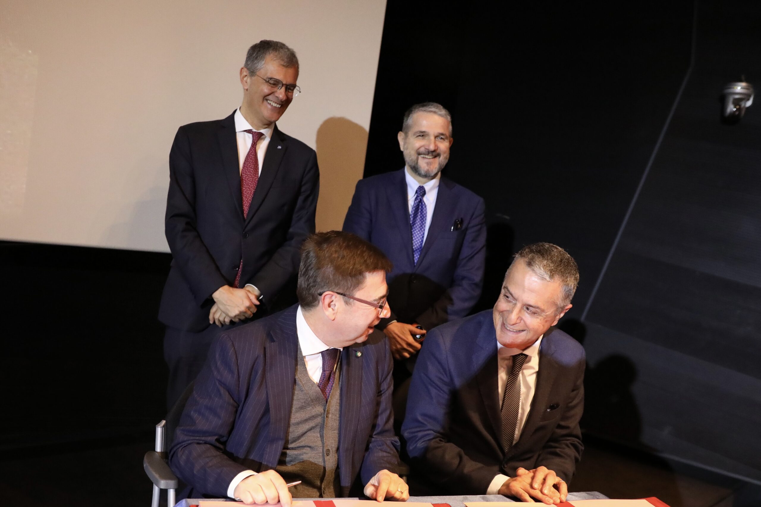 - Il presidente Saccoccia , il Viceministro MIMIT Valentini, il DG ASI Fabrizio Tosone e l’AD di Thales Alenia Space Italia, Massimo Comparini