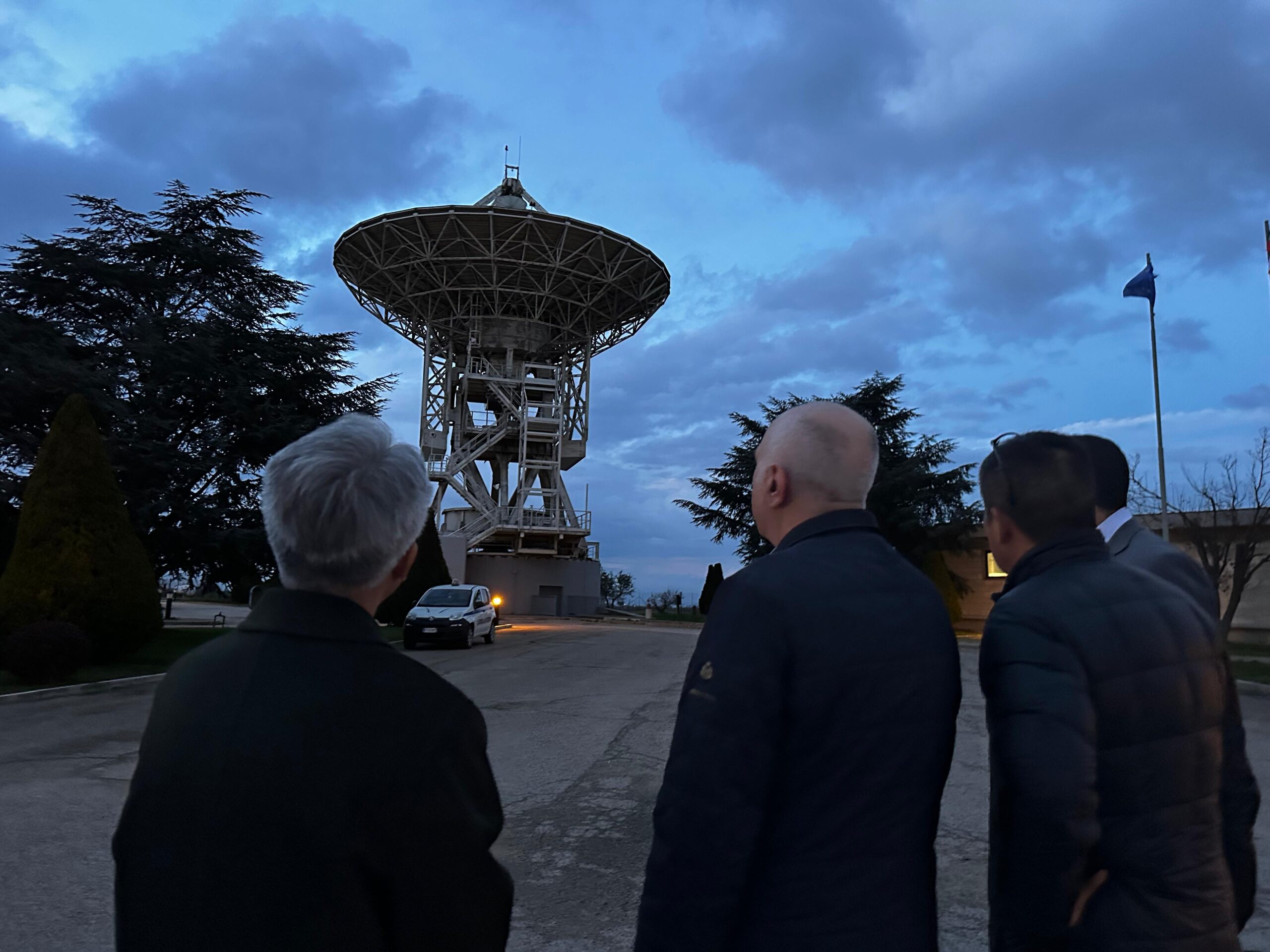 The visit continued at the Italian Space Agency's “Giuseppe Colombo” Space Geodesy Centre, where the delegation was welcomed by the Centre's director, Cosimo Marzo, for an overview of geodesy and precision observation activities. The day ended in the ASI Control Room, with a presentation by Daniele Santese, deputy head of the Centre and Manager of Operations and In-Orbit Support for the COSMO-SkyMed satellite constellation. Here, the operational activities of the ground segment of the mission, which is developed by the Italian Space Agency and the Italian Ministry of Defence, for which e-GEOS is the exclusive data concessionaire for commercial users, were illustrated.