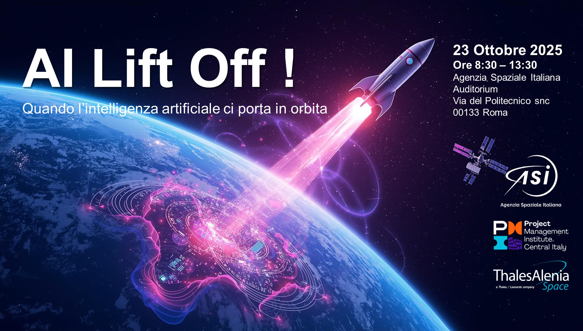 L’evento, organizzato dall’Agenzia Spaziale Italiana (ASI) in collaborazione con il Project Management Institute (PMI®) Central Italy e Thales Alenia Space Italia (TASI), è dedicato all'integrazione dell'Intelligenza Artificiale (AI) nelle attività di Project Management e nelle applicazioni spaziali. L’incontro rappresenta un'opportunità per esplorare come le tecnologie avanzate di AI possono rivoluzionare la gestione dei progetti e le missioni spaziali, migliorando efficienza, precisione e innovazione. Nel corso della giornata, esperti di project management, di gestione delle risorse umane e del settore spaziale condivideranno le loro conoscenze ed esperienze, presentando casi di studio e nuove metodologie che stanno trasformando il modo in cui concepiamo e realizziamo progetti complessi.
