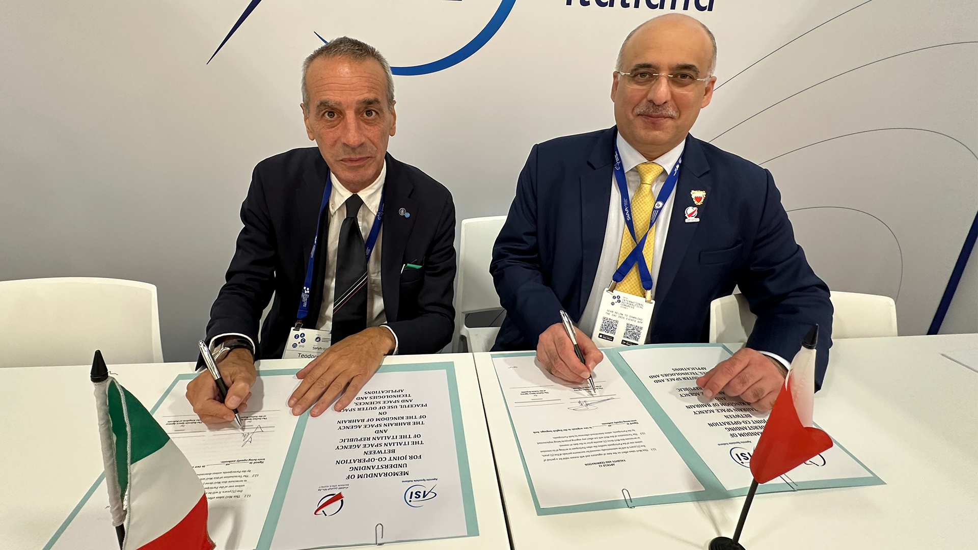- Il presidente dell’Agenzia Spaziale Italiana, Teodoro Valente e il CEO della Bahrain Space Agency, Mohamed Al Aseeri, hanno firmato un Memorandum of Understanding allo IAC 2025